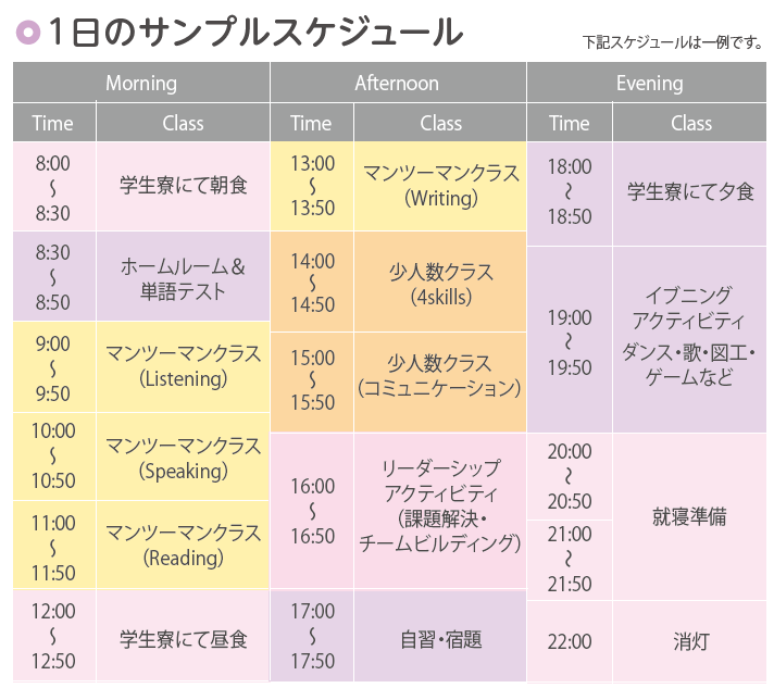 | 学生数(2025年平均) | 45名(最大75名) ※キャンプ参加の日本人のみでのレッスンとなります。 |